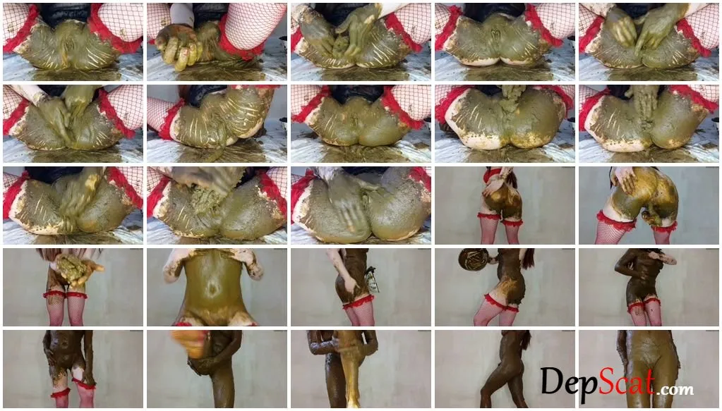 I moved the shit from the plate to the bowl and froze it again. A few days later I took out a bowl and tried to defrost the shit with a hair dryer for a very long time. I could not play that day, so I left the bowl on the street in a secret place for one night. I picked up the bowl in the morning and dried the shit with a hair dryer again (you will not see any of these actions with defrosting, because it is boring). Now shit is suitable for filling my pussy. Let’s play! I take the first handful of shit and start filling my pussy. Ah … I haven’t pooped in 3 days, so I realized that I can not let the shit out of my pussy only so I continue to fill the pussy even more and shit from 2 holes at the same time. Mmm… fresh shit is just great and fills my hole perfectly and it goes out just as well, I do it several times. Finally, I decided to fill the pussy with fresh and defrosted shit at the same time. I get up, take off my bra and blouse, turn my ass to you and squeeze the long and thick shit out of my pussy. WOW! I never thought my pussy could hold so much shit! I smear it on my boobs and belly then I smear all the shit from a bowl all over my body. A layer of shit so thick, it’s just an incredible feeling!