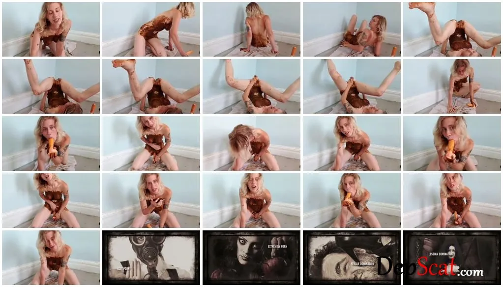 This is part two to my Scat Workout and Masturbation video. Watch as I give you a sexy, messy piss fountain while I’m already covered in shit. Starting off from upside down, I start fucking myself with my dildo, the taste of piss and shit on it as I taste it myself, before I turn over and fuck myself for you, talking dirty, covered in piss and shit.