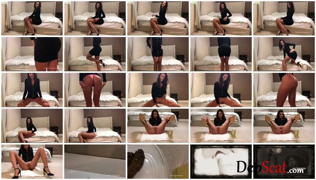 Showing off my supermodel body wearing a sexy black dress and heels telling you to worship me and my perfect shit. I piss into a glass for you and then take a big shit for you to eat.