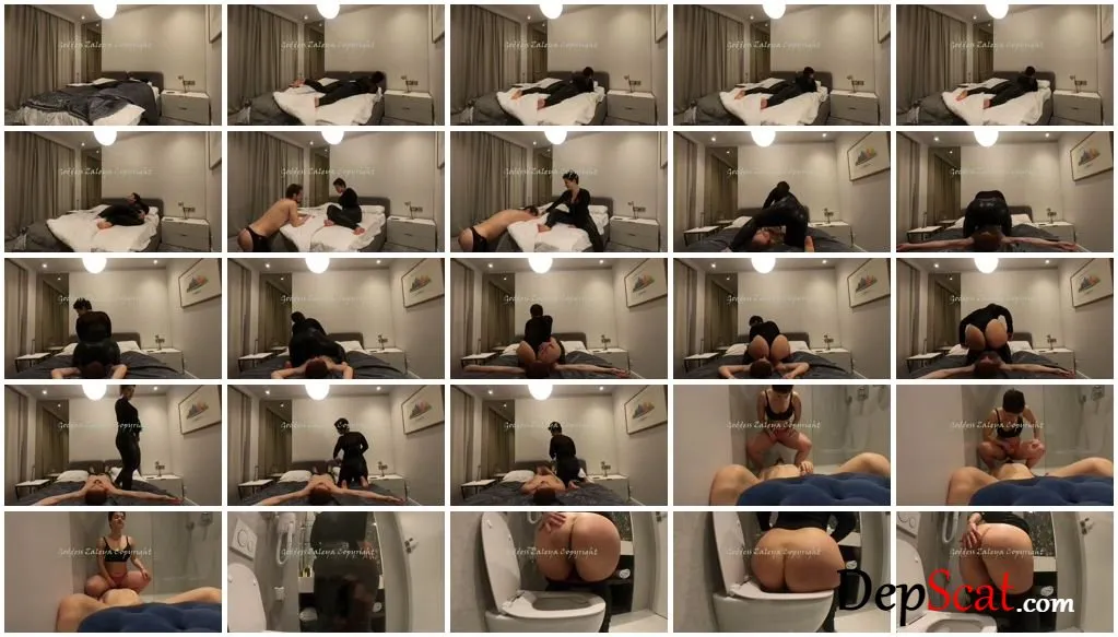 Description: Another epic farting/shitting clip with Goddess Zaleya ! Goddess were relaxing in her hotel room and she feels to fart. You can hear her noisy farts in her leather pants while she doing business on her phone. Goddess calls her toilet slave and calls him in a hurry. She needs a mouth to fart in as soon as possible. After her slave arrives, Goddess orders him to lay on her bed and keep his mouth open. She release nice farts right into his mouth and slae must inhale everything. At the end, Goddess farts in a bottle and offers him as a reward. after th "easy" part, the toilet slavery will follow : slave was told to lay ni the shower and keep his mouth open because Goddess needs to pee. She release a nice torent of piss right into his open mouth and orders him to swallow EVERYTHING. Then she allowed him to wash her pussy with his clean tongue. After the toilet was gone, Goddess shitting in her toilet for her fans.