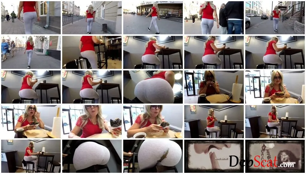 Today I booked a table at the fast food restaurant and I tease you walking down the street in tight leggings. The guys passing by turned around and looked at my sweet round ass. But all they deserve is just to eat the shit out of my ass. Today I bought a Black Burger and Cappuccino. But soon after such a junk meal, I felt pain in my stomach and I really wanted to poop. But there was no toilet and I had to poop in my leggings right at the restaurant table. People in the restaurant saw a brown spot at my ass and talked about and I loved it!