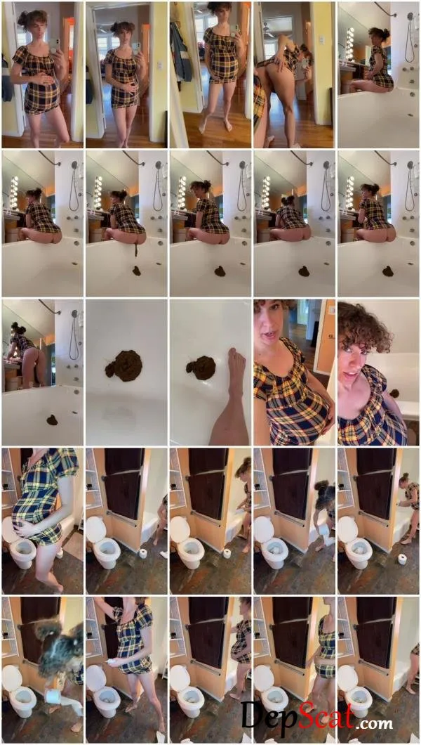 Description: Watch me role play a pregnant woman who can’t hold in her poop any longer. She can’t even make it to the toilet because it’s too hard to sit on it so she takes a huge pregnant shit into the bathtub. This poop is HUGE! Then she shows you how she cleans it up. It’s one of the biggest poops I’ve ever seen!
