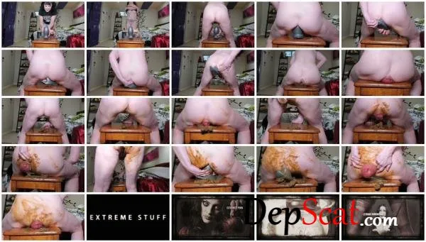 Oh this new plug feels great in my ass, I push it out and then push out my prolapse and a beautiful long loose log slides out. I scoop up the poop and place it on my chair so I can mash my ass and cunt and rose in the soft warm shit, get my ass really dirty with shit and then insert the butt plug again and push big shitty prolapse repeatedly