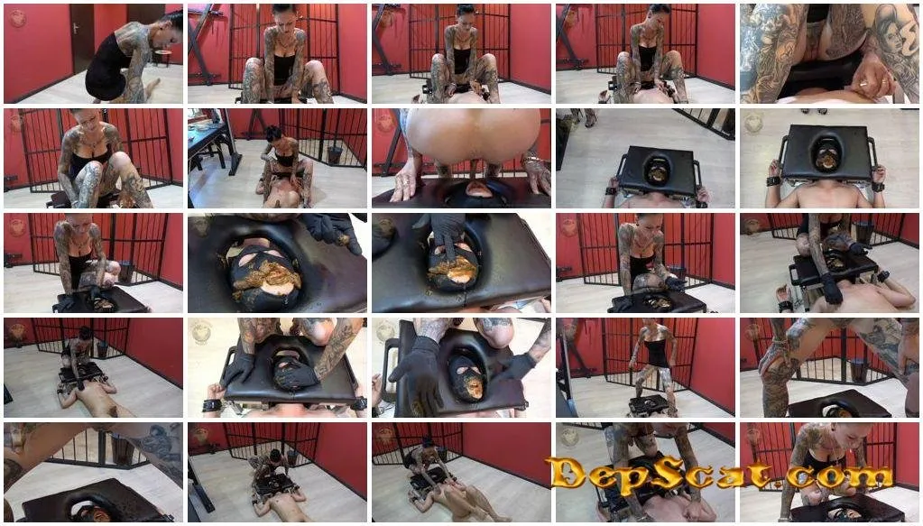 Almost naked a slave is allowed to enjoy my ass. Imprisoned in the face sitting box he has no way to move his head. I sit in the middle of his face, his nose slips between my ass cheeks and his mouth is firmly under pressure. I alone decide, when and how long he can breathe. As I sit here, I feel that I did not shit today and slowly urgently need to. How convenient, that my little facesitting slave is here to abuse him as a toilet just in the perfect position. So he will probably have no other choice than to open his mouth so I can shit finally. I will only let him go, when the whole shit and piss was swallowed. Well bad luck, so quickly the situation can change
