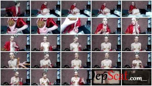 I shit in my hand and show it to you in close-up. I smear it over my face and over my tits. I put my chocolate in my mouth and eat it. I do some dirty talk, for example, I describe the smell and the taste of my poop.