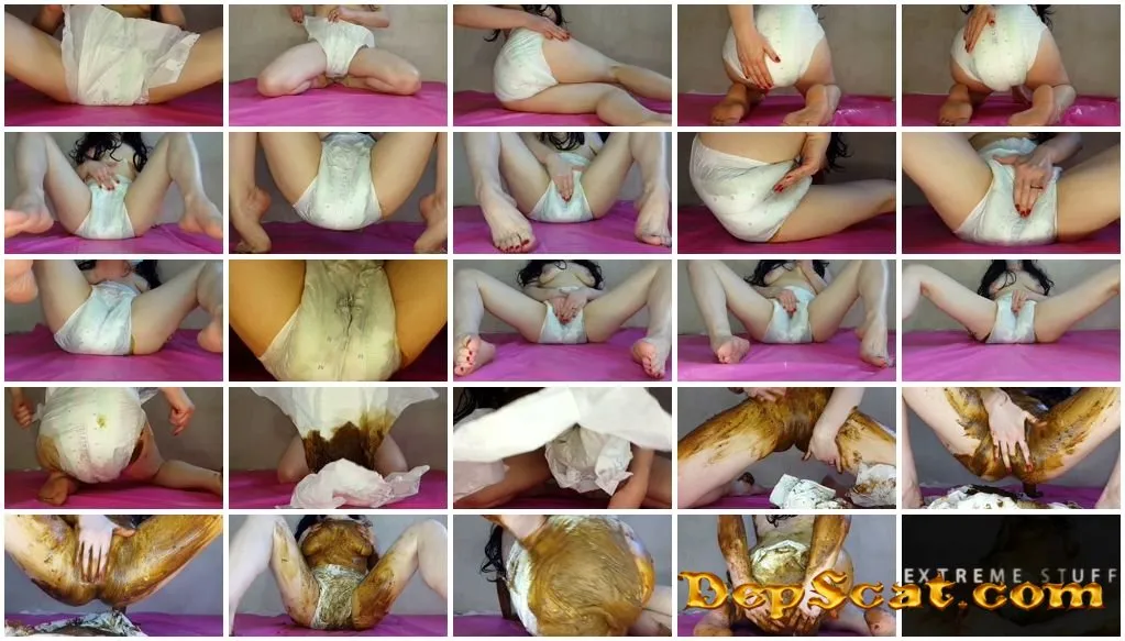 For a long time I have not played with a diaper.I'll fix it now. So I put on a diaper, shit and piss a big pile of soft and liquid shit inside. So nice to feel a soft and wet diaper. I rub my pussy over the diaper and almost make a hole in it. I rub my pussy for a very, VEEERY long time and cum. I take off the diaper and show you a big pile of liquid shit inside and rub shit on tits, belly, pussy. Wear a diaper again and make a hole to insert my finger in the ass, keep smearing my body with shit.